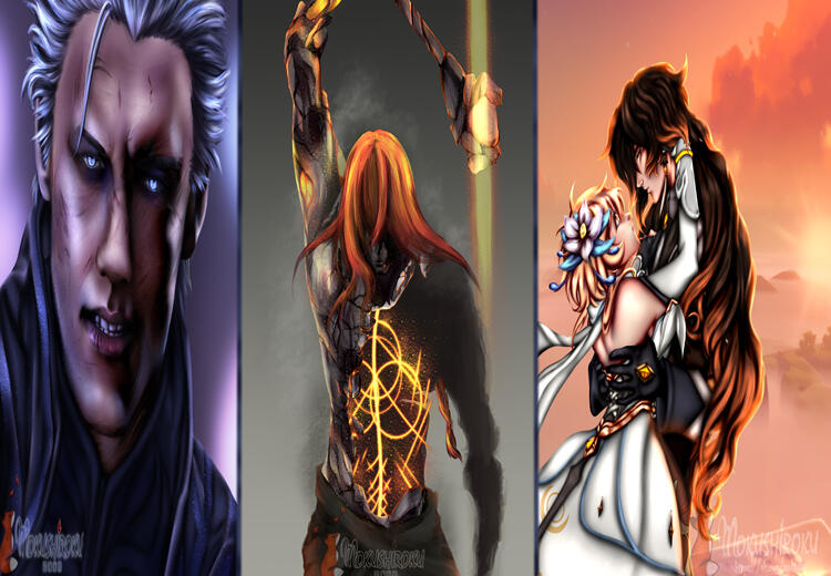 What am I drawing?● people, and everything related to them (humanoids, elves, angels, demons, etc.);● clothing (with details too);● surroundings, landscapes, backgrounds;● Eyes, eyes, more eyes!● NSFW sometimesWhat am I not drawing?● furries, ferals, etc;● architecture;● Sophisticated armor;● Robots/cyborgs.